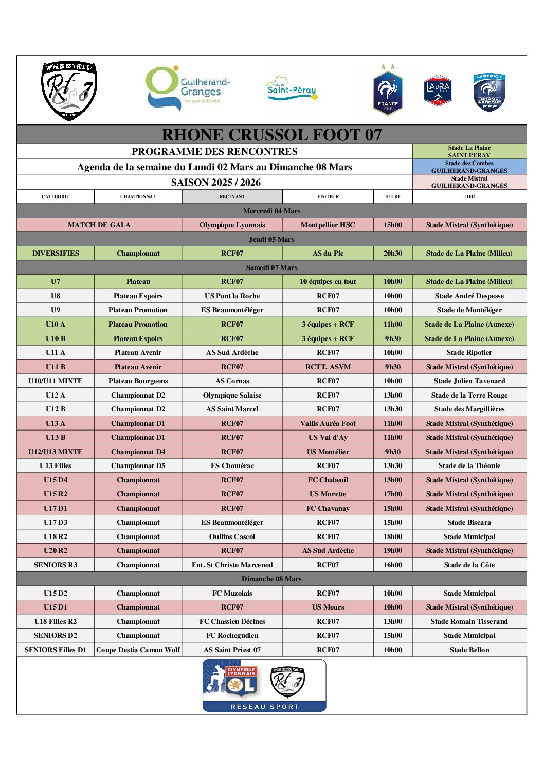 Voici le programme de cette nouvelle semaine pour nos équipes du RCF07 !