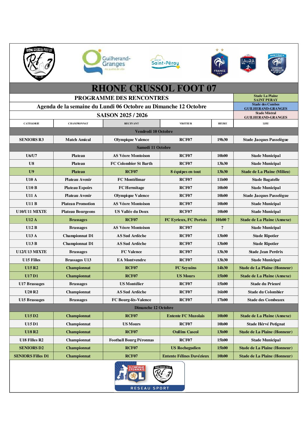 Pas mal de matchs à domicile au stade de La Plaine à Saint Péray où nos équipes auront besoin de votre soutien !