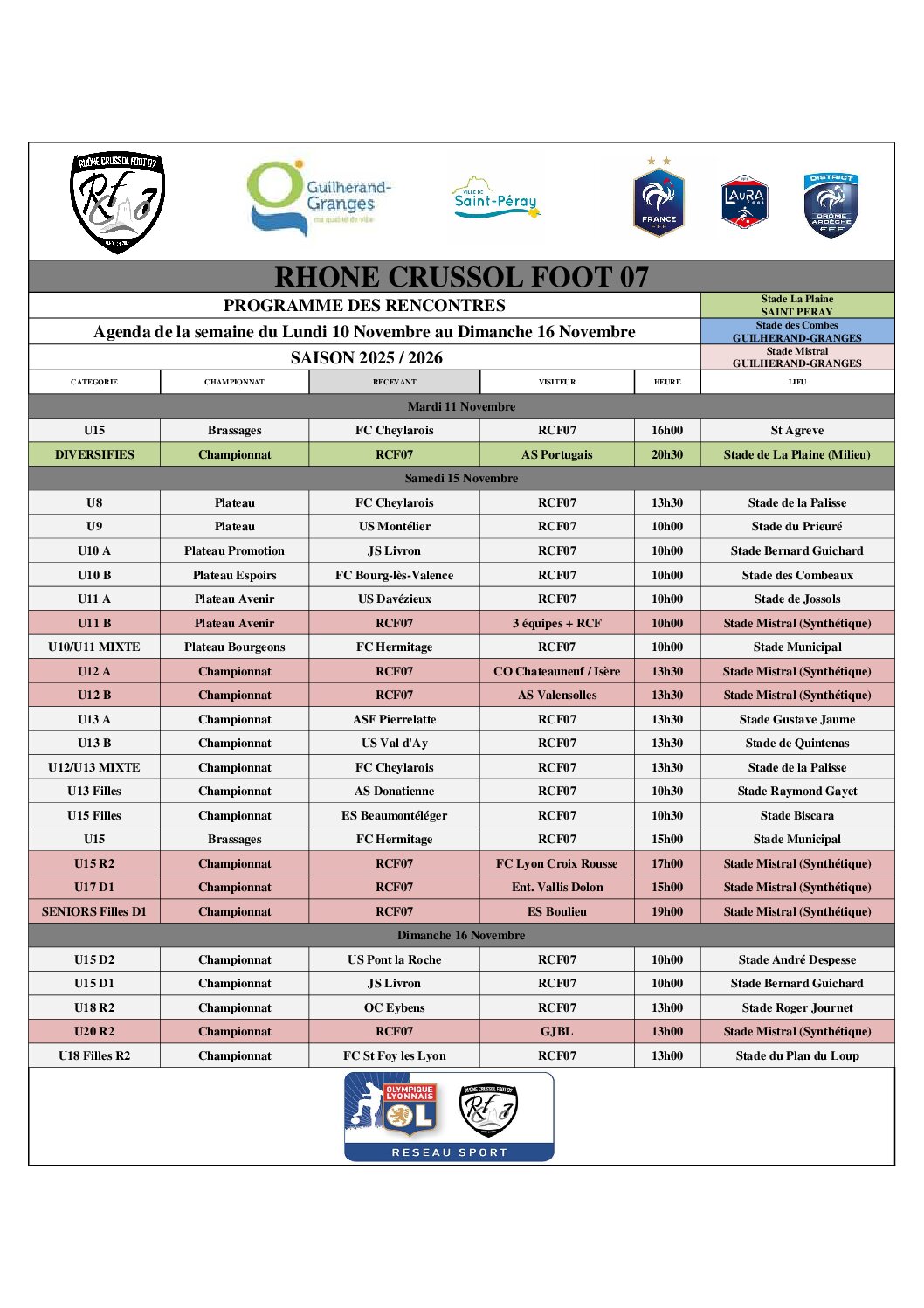 Pas mal de matchs à domicile au stade de La Plaine à Saint Péray où nos équipes auront besoin de votre soutien !Pour...